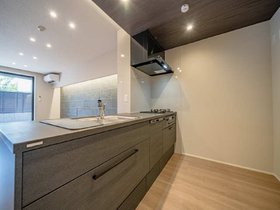 | キッチン | ガスコンロ対応、システムキッチン、3口以上コンロ、対面式キッチン、グリル付、都市ガス |