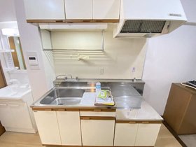 広々キッチン2口ガスコンロ設置可能です。独立洗面台も付いてこの家賃は魅力的◎本郷駅まで徒歩4分の好立地な1Kマンションです。名東区のお部屋探しはニッショーまで♪