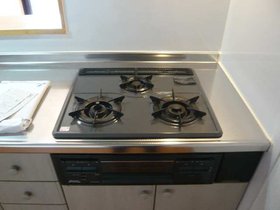 | キッチン | ガスコンロ対応、システムキッチン、3口以上コンロ、対面式キッチン、都市ガス |