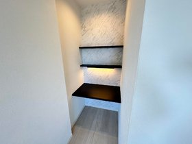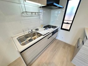 3口のガスコンロやカップボードが付いているので、お料理が好きな方にも満足して頂けるキッチンスペースです。洋室には収納たっぷりできるウォークインクローゼットやワークスペースがあります。