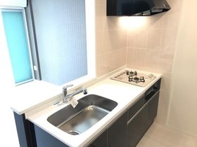| キッチン | ガスコンロ対応、システムキッチン、2口コンロ、対面式キッチン、都市ガス |