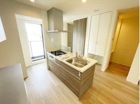 | キッチン | ガスコンロ対応、システムキッチン、2口コンロ、3口以上コンロ、アイランドキッチン、都市ガス |
