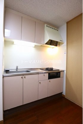 | キッチン | ガスコンロ対応、システムキッチン、2口コンロ、プロパンガス |