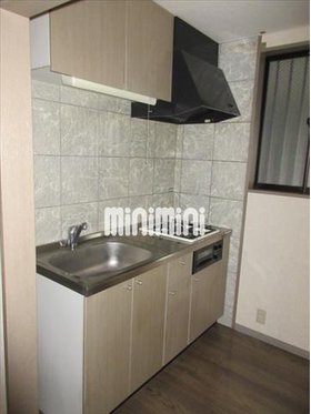 | キッチン | ガスコンロ対応、システムキッチン、2口コンロ、プロパンガス |