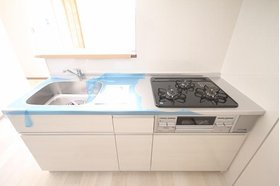 | キッチン | ガスコンロ対応、システムキッチン、3口以上コンロ、対面式キッチン、プロパンガス |