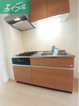 | キッチン | ガスコンロ対応、システムキッチン、2口コンロ、プロパンガス |