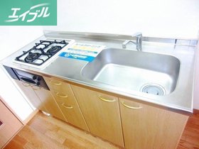 | キッチン | ガスコンロ対応、システムキッチン、2口コンロ、プロパンガス |