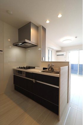 | キッチン | ガスコンロ対応、システムキッチン、3口以上コンロ、対面式キッチン、都市ガス |
