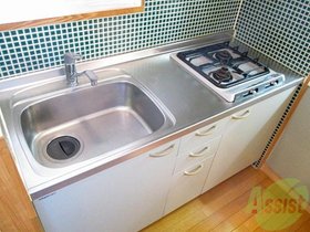| キッチン | ガスコンロ対応、システムキッチン、2口コンロ、対面式キッチン、都市ガス |