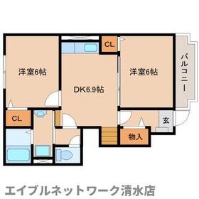 角部屋!オール洋間の2DK☆スーパーへ865m。コンビニへ280m。ドラックストアへ442m近隣環境も整っているので住みやすいですよ。設備も充実!お問い合わせはエイブルネットワーク清水店まで!!!