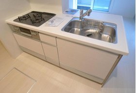 | キッチン | ガスコンロ対応、システムキッチン、3口以上コンロ、対面式キッチン、都市ガス |