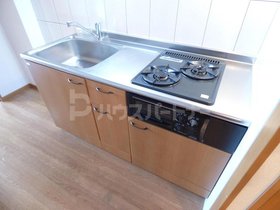 | キッチン | ガスコンロ対応、システムキッチン、2口コンロ、プロパンガス |