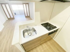 | キッチン | ガスコンロ対応、システムキッチン、2口コンロ、対面式キッチン、都市ガス |