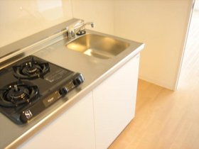 | キッチン | ガスコンロ対応、システムキッチン、2口コンロ、プロパンガス |