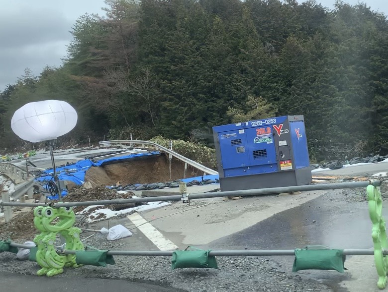 空港からTOGISOへ向かう道はそこかしこに亀裂が入り、陥落し、片側通行できればまだマシな状況だった。災害復興の大型車両が何台も奥能登に向かって走っていった。12月に「また来年」と思い後にした能登がこんなにも姿を変えてしまったことにショックを受けた。