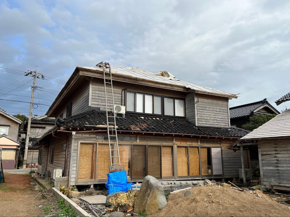 見慣れた集落に到着した。太陽の光を浴びて美しく輝いていたはずの黒瓦にはブルーシートがかかっていた。